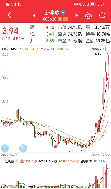 9月上旬以来,新华联文旅虽经营惨淡、财务堪忧,但在A股市场上一骑绝尘,独领风骚,股价持续暴涨,曾连拉4个涨停板,引人眼馋。