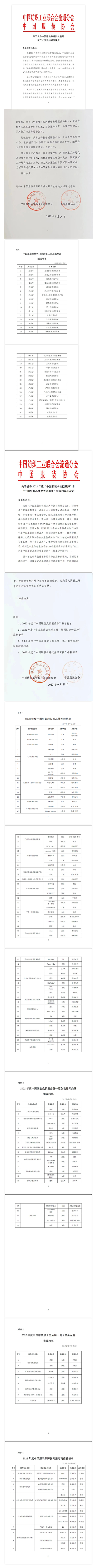 最终,Rama ape、T.Y.P、伊莱雅特等59个自主服装品牌被推荐为“2022年度中国服装成长型品牌”;推荐CHANUN婵之云、MEGG、love potion、麦谷风等21 个自主服装品牌为“2022年度中国服装成长型品牌——原创设计师品牌”;推荐辉弢、梓嫣等8个自主服装品牌为“2022年度中国服装成长型品牌——电子商务品牌”;推荐安徽依之元纺织品有限公司、杭州优田服饰有限公司等10个服装品牌代理商为“2022年度中国服装品牌优秀渠道商”。(名单附后)