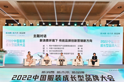 以“新消费环境下,传统品牌创新营销新方向”为主题的对话环节,中国服装品牌孵化基地代表桐乡市濮院针织产业园管委会副主任王海波、中国十佳时装设计师屠俊、设计谷品牌总经理李坊海、飞榴科技联合创始人兼首席产品官刘珂分别从自身角度阐述了“十四五”时期如何在以国内大循环为主体、国内国际双循环相互促进发展的新路径基础上,将现代潮流与传统产业有机融合,推进产业高质量发展。
