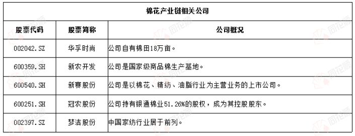 根据同花顺i问财,我国棉花产业链相关的公司如下表所示: