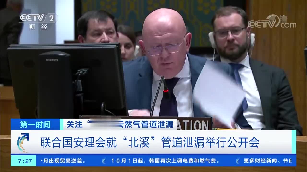 当地时间9月30日,联合国安理会应俄罗斯代表团的要求,就“北溪”天然气管道泄漏事件举行公开会。公开会上,俄罗斯天然气工业股份公司发言人库普里亚诺夫就“北溪”管道泄漏发生的时间、地点等进行了说明。俄罗斯常驻联合国代表涅边贾在发言中表示,俄罗斯已就泄漏事件的恐怖主义性质发起调查。他说,“北溪”管道发生泄漏对欧洲不利,对俄罗斯毫无意义,只有美国可以从中获利。而对这一指控,美国常驻联合国代表予以否认。