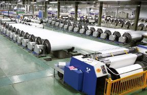 (有些面料的纱线还需要加捻,在织造前,纱线要拿到倍捻机上加捻)