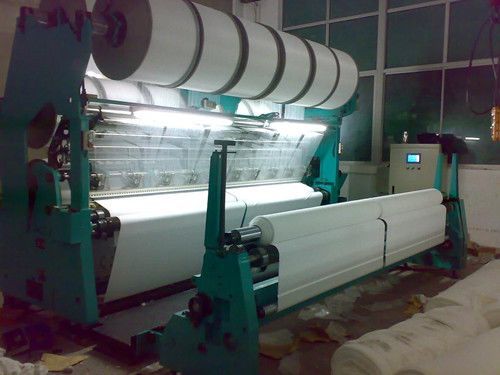 经编:指在经编机上,将一组或多组平行排列的纱线,沿经向喂入工作针织,同时弯纱成圈,并在横向相互连接而形成面料的方法。