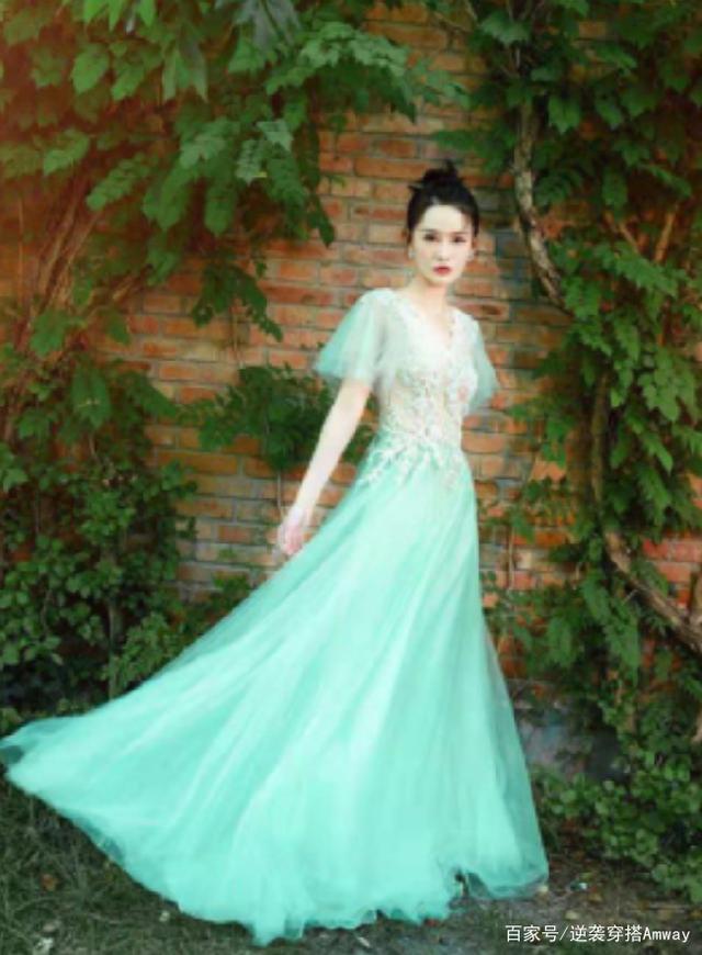 色彩:李沁选择了一条以绿色为渐变色调的的蕾丝纱质裙,整体层次分明又衔接得十分准确。微微发白的上半部分让人看起来非常的优雅大气,逐渐变成浅绿色的下半部分,能够很好地将整体造型的重心呈现出来。