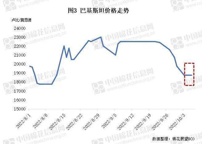 同期,受巴基斯坦轧花厂降价出售意愿增强影响,新棉报价于节初回落至20000卢比/莫恩德线内,较节前明显下调,至本年度低位。