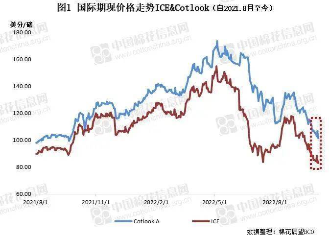 国庆假期期间,ICE期棉12月合约维持宽幅震荡运行,波动区间有所下移。其中受外围宏观扰动影响,期棉于4、5日出现脉冲式涨跌行情,从最新价格水平来看,整体已跌至近两年度较低位置。国际棉花现货价格整体跟随期货下调,详情如下。