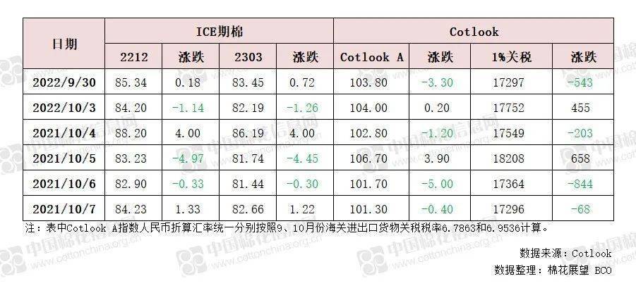 国庆假期期间国内郑棉休市,国际棉花市场正常运行。为直观体现假期间国际棉花市场情况,现将信息整理如下: