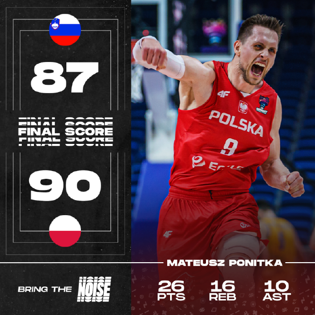 波兰男篮90-87险胜斯洛文尼亚,51年来首次进入欧锦赛四强